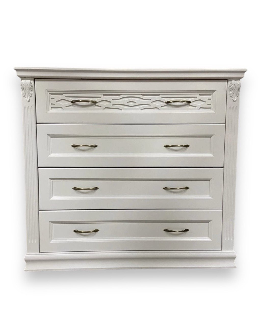 Изящные вензеля на фасадах ящиков комода Екатерина смотрятся потрясающе волшебно. Необычный летний рисунок всегда будет выглядеть в помещении легко и по весеннему. Такой дизайн дополнит не только спальную комнату, но и станет отличным акцентом в просторной гостиной. Комод Екатерина изготовлен из массива сосны. Дерево экологически безопасное и достаточно долговечное.